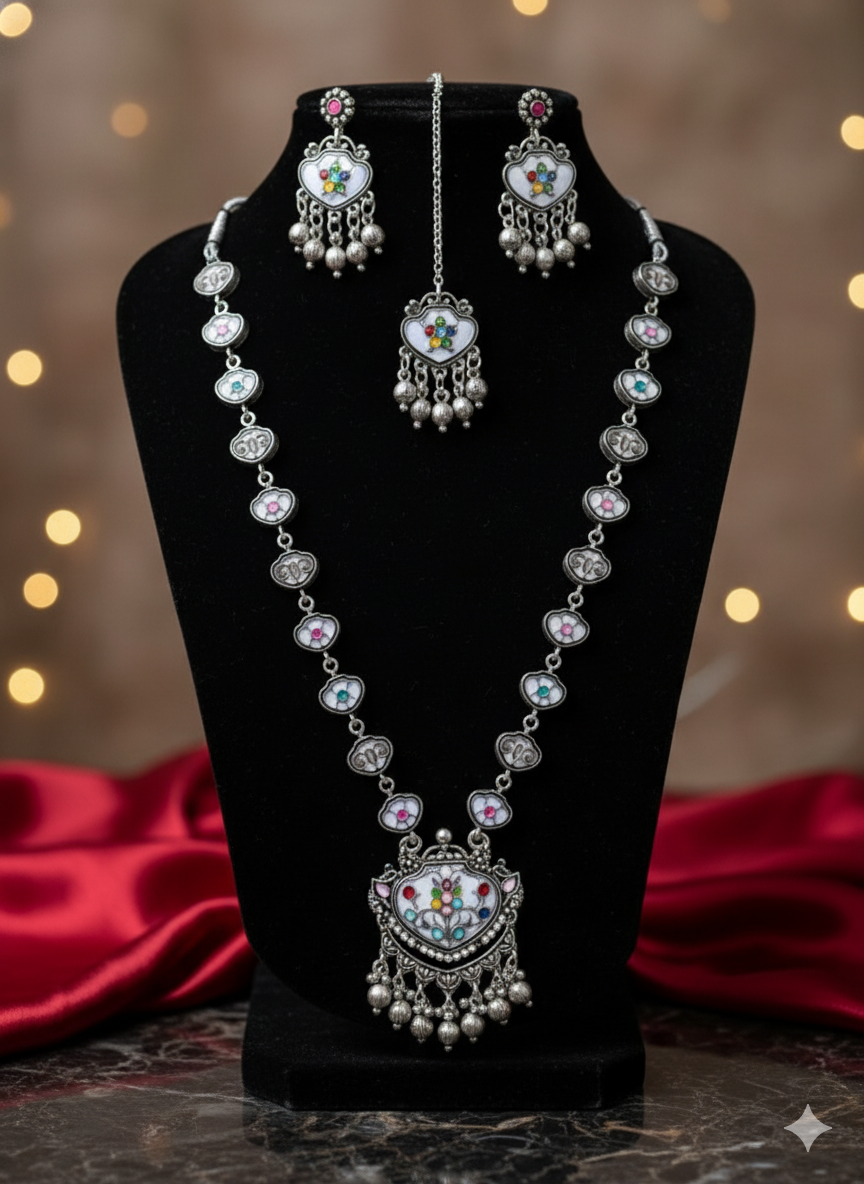 Dilruba Multicolor Oxidized Long Necklace Set