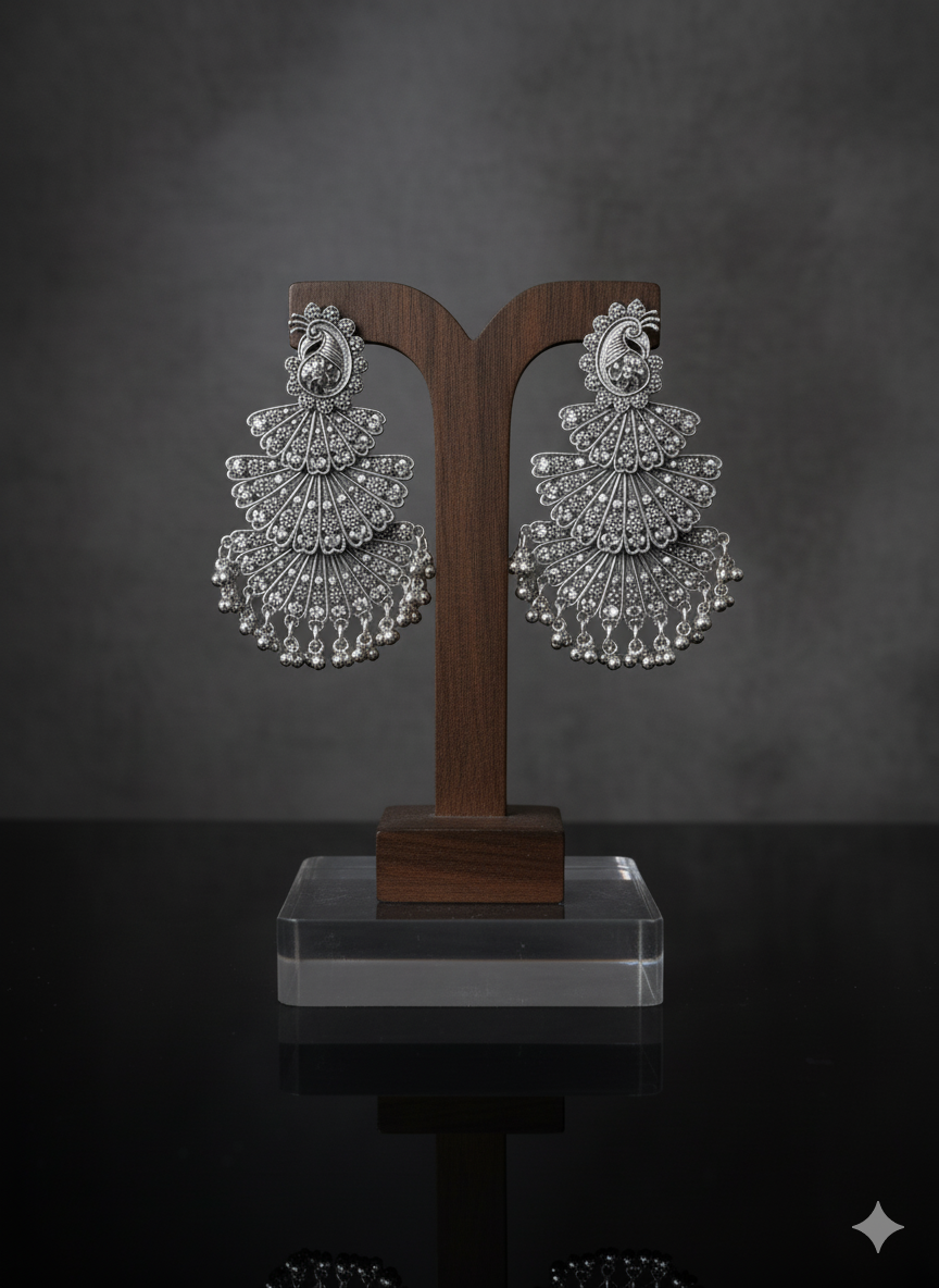 The origins of Jhumka trace back to ancient temple sculptures from the Chola dynasty, around the 3rd century BCE. Over centuries, the style evolved under royal and Mughal influences, with each region adapting its own motifs and materials, such as meenakari enamel from Rajasthan, intricate filigree from Orissa, pearl elements in Hyderabad, and Kemp stones from Tamil Nadu.Jhumkas are traditionally believed to symbolize spirituality, eternal life, and to bring positive energy through the gentle sound they produce.