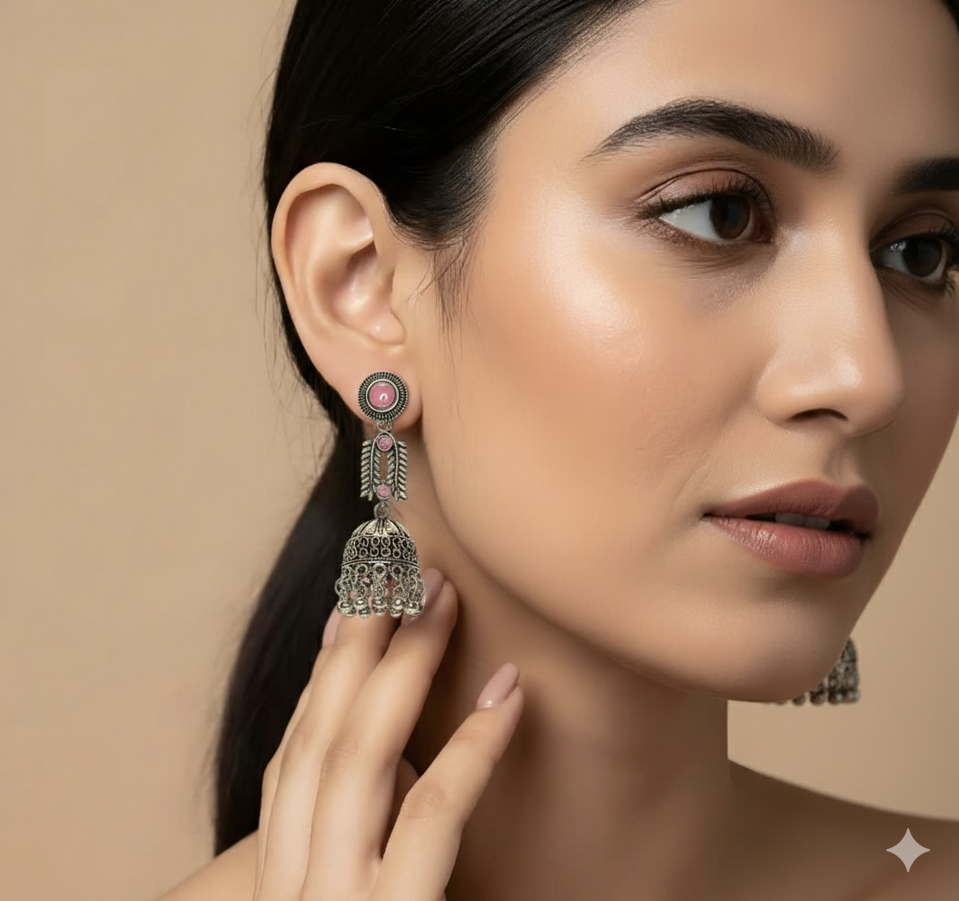 The origins of Jhumka trace back to ancient temple sculptures from the Chola dynasty, around the 3rd century BCE. Over centuries, the style evolved under royal and Mughal influences, with each region adapting its own motifs and materials, such as meenakari enamel from Rajasthan, intricate filigree from Orissa, pearl elements in Hyderabad, and Kemp stones from Tamil Nadu.Jhumkas are traditionally believed to symbolize spirituality, eternal life, and to bring positive energy through the gentle sound they produce.