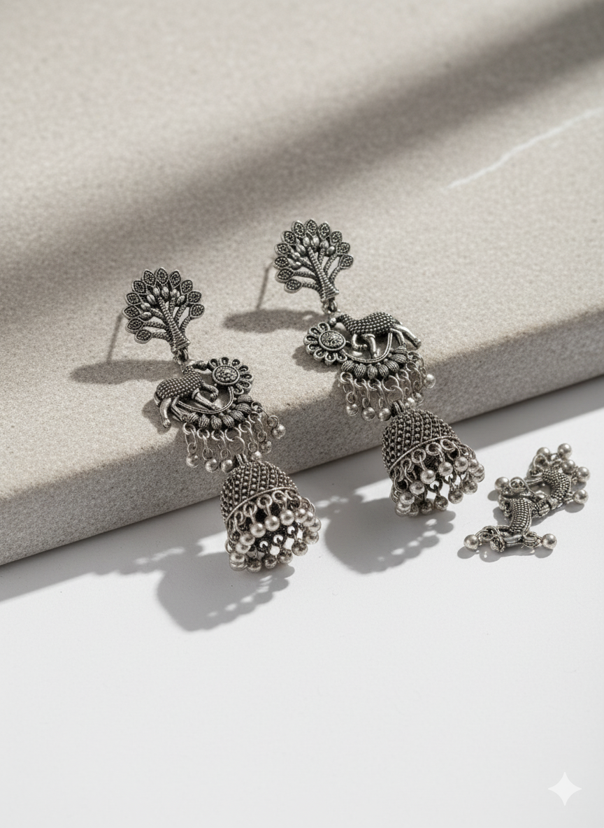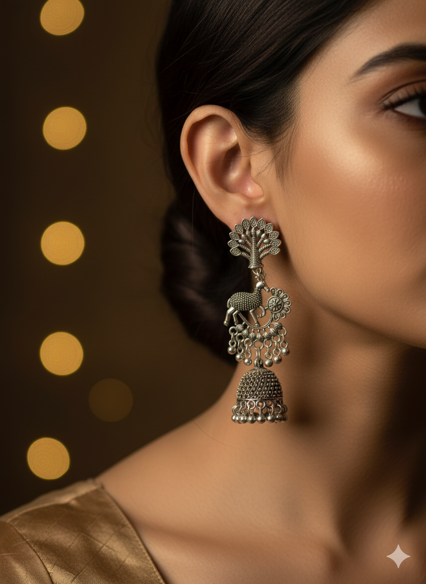 The origins of Jhumka trace back to ancient temple sculptures from the Chola dynasty, around the 3rd century BCE.​ Over centuries, the style evolved under royal and Mughal influences, with each region adapting its own motifs and materials, such as meenakari enamel from Rajasthan, intricate filigree from Orissa, pearl elements in Hyderabad, and Kemp stones from Tamil Nadu.​Jhumkas are traditionally believed to symbolize spirituality, eternal life, and to bring positive energy through the gentle sound they produce.​