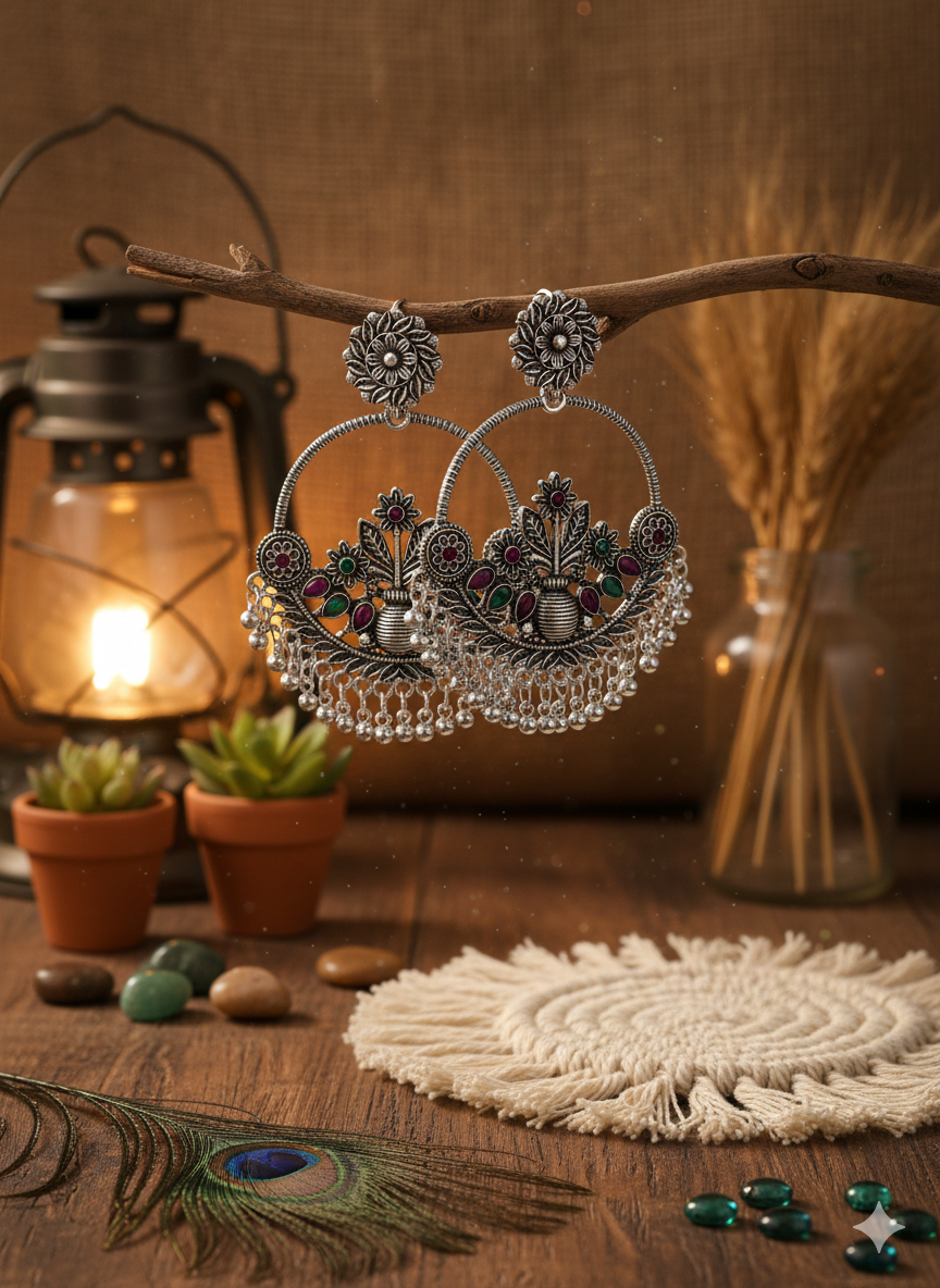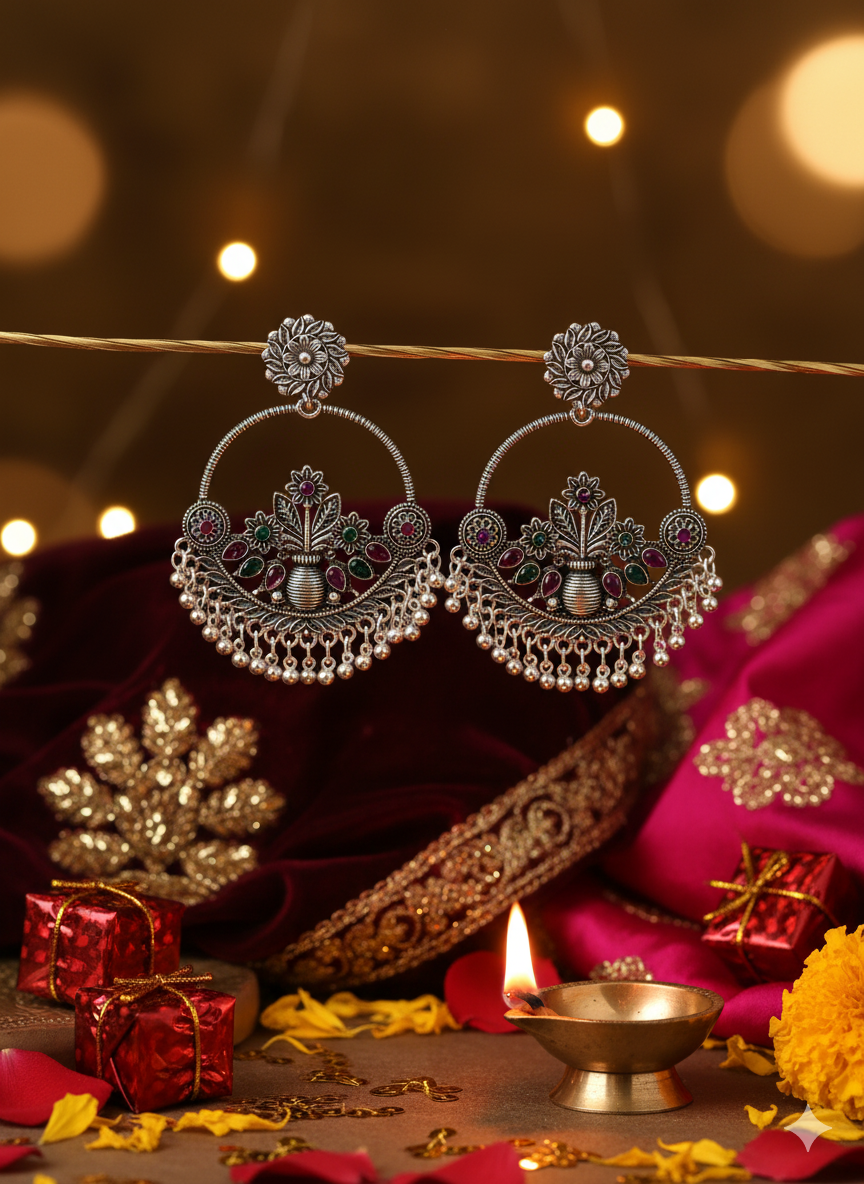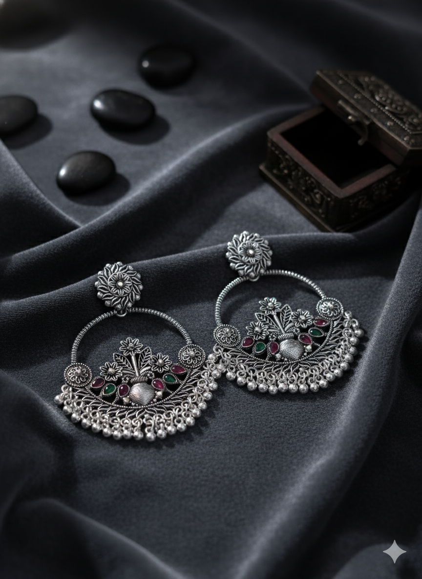The origins of Jhumka trace back to ancient temple sculptures from the Chola dynasty, around the 3rd century BCE. Over centuries, the style evolved under royal and Mughal influences, with each region adapting its own motifs and materials, such as meenakari enamel from Rajasthan, intricate filigree from Orissa, pearl elements in Hyderabad, and Kemp stones from Tamil Nadu.Jhumkas are traditionally believed to symbolize spirituality, eternal life, and to bring positive energy through the gentle sound they produce.
